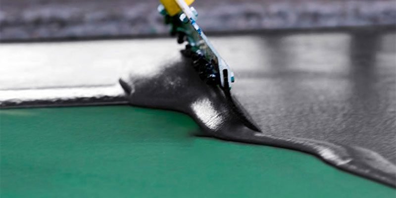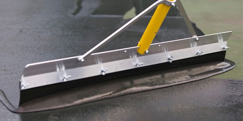 Use a rubber squeegee to apply the resurfacer mixture across the whole court surface spreading it evenly. Apply work in an even direction to achieve even thickness and texture. This coating is used to even out small surface flaws and the court is then ready to be overlaid with cushion or colour.