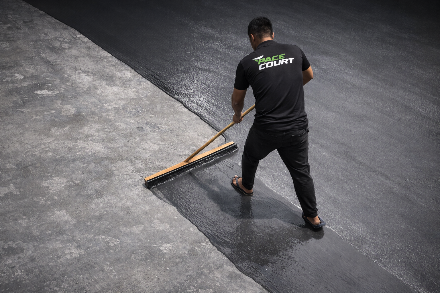 Clean the concrete surface to remove dust, grease, oil, or debris. For best results, the area must be dry, stable, and crack-free.